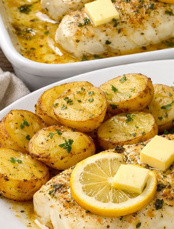 400 g tresky opláchněte a očistěte. Rybu z obou stran rovnoměrně okořeňte směsí Ryby, případně lehce dosolte. Pekáč vytřete změklým máslem, uložte do něj rybu a kousky másla přidejte přímo na filet. Na závěr přidejte citron nakrájený na kolečka a pečte v troubě vyhřáté na 180 °C přibližně 15–20 minut. Podávejte s vařenými nebo opečenými bramborami a salátem z čerstvé zeleniny.