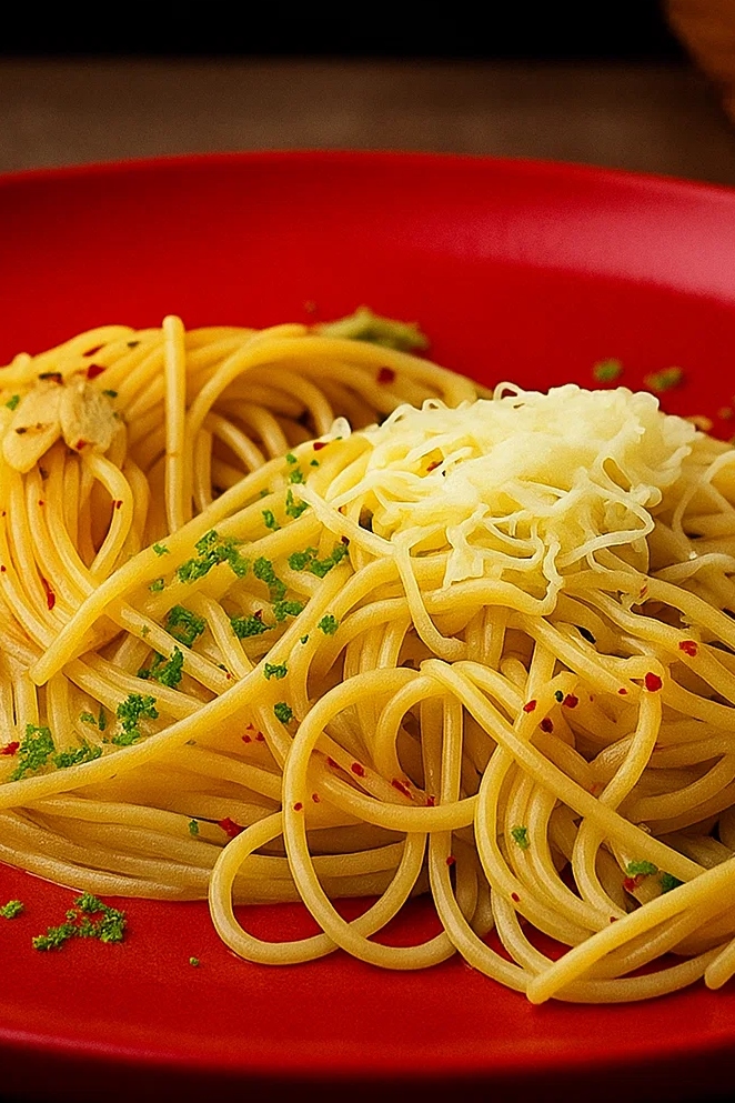Na 4 porcie: 500 g špagiet, 60–80 ml extra panenského olivového oleja, 2 polievkové lyžice zmesi Aglio olio & peperoncino, hrsť nasekaného petržlenu (voliteľne), strúhaný syr podľa chuti.